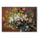Ce travail est romantique avec un sujet traditionnel de la vie immobile. Les fleurs de floraison dans un pot avec différentes formes sur le fond de brun foncé donnent une association agréable du paysage animé de ressort dans le jardin.