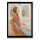 Jolie image d'une fille suédoise traditionnelle assise à l'église avec les yeux levés. L'oeuvre murale derrière elle comprend Mary sous une croix. Carl Larsson Art vintage c1917. Révélation de "Uppenbarelse"