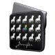 Unicorn Pattern Persoonlijke zwarte en witte Silhouette Girls neopreen laptophoes. Een patroon van witte eenhoornsilhouetten op zwarte achtergrond. Rode, oranje, gele, groene, blauwe en paarse kleuren voor de middelste eenhoorn in een regenboogvormig waterverf. Pas dit hoesje van douanelaptop met naam in mooie manuscriptdoopvont onder de eenhoorns aan. unicorn over elektronische accessoires voor kinderen, tweens en tieners meisjes.