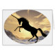 Une fantastique silhouette de licorne contre le coucher du soleil