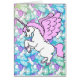 Cute White Unicorn avec cheveux roses et ailes avec un motif de Unicorn arrière - plan en bleu dégradé. Entièrement personnalisable. Le Big Unicorn peut être déplacé et redimensionné.