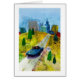 vacances de médias mélangés. Conduite lunatique en bas de la route pour avoir de l'amusement. Bâtiment à l'arrière-plan. "peinture lunatique", "art lunatique", "peintures lunatiques", spontanément, de fantaisie, espiègle, étranges, "articles lunatiques", fantaisie, "fleurs lunatiques", art, contemporain, "art de mur", peintures, sloane, sloane lunatique, maison, "maison lunatique"