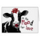 Cette vache à lait noire et blanche de laiterie est dans le moooood pour l'amour et tout habillé pour être la date d'une certaine personne chanceuse cette Saint-Valentin ! Lèvres rouges lumineuses de rouge à lèvres sur sa bouche et un arc rouge brillant sur sa tête, avec coordonner le texte noir et rouge.