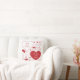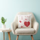 Een kussen ontworpen met een twee namen valentijn patroon, rood op wit. Pas het kussen aan met je hartennamen, achtergrondkleur, onder andere opties.