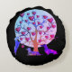Coeurs rouges sur un arbre, Chiens Dachshund sur coutume Polyester brossé Coussin rond 41 cm
