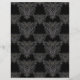 8,5 x 11-inch plakboekpapier, zwart met een ingewikkelde gestileerde vampiervleermuisdemper. Gebruik het als elegante cadeauomslag voor iets kleins, of voor Halloween scrapbooking of party decorations.