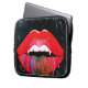 Vampier- en brandweerlippen die een regenboog afvuren.