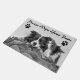 Deze volledig aanpasbare deurmat met Jazmine de Border Collie liggend op een boomstam herinnert uw gasten om hun poten af te vegen wanneer ze op bezoek komen! Verander de tekst, afbeelding en/of pootafdrukken gemakkelijk indien nodig.
