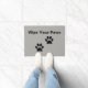 Dit is een leuke groetdoormat die zegt je poten te wissen. U kunt de tekst veranderen in wat u maar ook de lettergrootte, kleur en stijl wilt.
