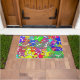 Het kleurrijke patroon van de afdrukken van de hondenpoep in vele maten, hoeken en kleuren. Aangepaste deurmatten. Cadeauidee voor hondenliefhebbers.