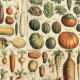 Dit patroon is afgeleid van een digitaal verbeterde afdruk van de antiek Adolphe Millot' illustraties voor "Groenten en groenten voor iedereen" (peulvruchten en plante potageres-pour tous)