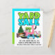 Carte postale de vente de jardin rétro bleu clair et vert avec flotteur de piscine flamant rose
