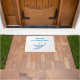 Een deurmat met een kunstwerk van kleurrijke veren & een hoefijzer, met de zin "Welkom, op ons Happy Boerderij!" Dit werk is auteursrechtelijk beschermd door mij, de kunstenaar.