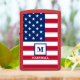God zegene Amerika. Het land van de vrijheid. Deze rode, witte en blauwe Amerikaanse vlag ontwerp kan worden gegeven als een cadeau voor een verjaardag, trouwen of andere gelegenheid. Het patriottische VS-vlag monogramontwerp kan worden gepersonaliseerd met de initialen en naam van de persoon. Het elegante en klassieke ontwerp is van u om aan te passen zoals u wilt.