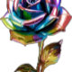 Introductie van 'vergulde bloemblaadjes', een buitengewoon collectie van rozen die fascineren door hun glinsterende iriserende afkomst. Deze blooms tonen hints van roze, paarse, gouden en bronzen, waardoor een boeiend display ontstaat dat doet denken aan een delicaat metallic meesterwerk.