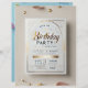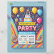 Het "All-in-One Birthday Party Invitation"-ontwerp heeft een levendige en feestelijke lay-out met kleurrijke ballonnen, confetti en een verjaardagstaart illustratie. De bovenste toont speelse tekst die gasten uitnodigt voor het feest, terwijl de onderste sectie ruimte biedt voor essentiële details zoals de datum, tijd, locatie en RSVP-informatie. Met een heldere en vrolijke achtergrond in gradiënttonen is deze kaart perfect voor het creëren van opwinding en het instellen van een vreugdevolle toon voor het komende feest. Ideaal voor kinderfeesten of een leuk verjaardagsevenement!