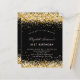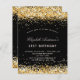 Een moderne, stijlvolle en glamoureuze uitnodiging voor een 21ste (of om het even welke leeftijd) verjaardagsfeestje. Een zwarte achtergrond versierd met faux goudglitter stof. De naam wordt geschreven met een modern handgeschreven stijlmanuscript met letters. Pas je partijgegevens aan en voeg deze toe.