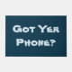 Dit leuke portret heeft een vraag in grote letters om je eraan te herinneren te controleren dat je je telefoon in je tas of zak hebt, terwijl je het huis "Krijg Yer Phone?" verlaat, is de vraag die je zal zien als je je deur opent. De milde herinnering zal je geheugen graven om je telefoon te controleren voordat je het huis verlaat. Het is ook een eigenaardig en leuk slaapsel om thuis te zijn. Dit is een aanpasbaar formaat, kunt u de kleur kiezen en het personaliseren met uw eigen tekst als u dit wenst.