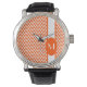 Vermiljoen Elegant Chevron Design met monogram Horloge