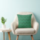 Groen kussen. Het ontwerp is hoofdzakelijk groen met donkerere groene stippen, en kleinere stippen in turkooise