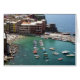 Blank wenskaart van de haven van Vernazza, Cinque Terre, Italië. Vernazza is een stad en comune in de provincie La Spezia, Ligurië, noordwesten van Italië. Het is een van de vijf steden in de regio Cinque Terre. Vernazza is de vierde stad die noord naar de Cinque Terre loopt. Het heeft geen autoverkeer (een weg loopt naar een parkeerplaats aan de rand van de stad) en blijft een van de meest waarachtige "vissersdorpen" op de Italiaanse Riviera.