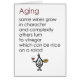 Een grappige verjaardagskaart met een slecht gedicht en illustratie over hoe we op een of andere manier als wijn verouderen.