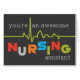 De dag van de verpleegassistenten, die in mei gevierd werd, is een tijd om hen te laten weten hoe geweldige ze zijn en hoeveel ze doen. De letters zijn onderling vermengd met een hartslaggrafiek.