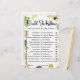 Vers van de markt zou ze liever spel | Leuk Vrijgezellenfeest Gissen Activiteit Hoe goed kennen uw gasten de bruid echt? Ontdek het met onze leuke "Fresh Off The Market" Zou ze liever bruids spel! Deze boeiende activiteit is een perfecte aanvulling op uw boerenmarkt, tuin of vrijgezellenfeest met een rustiek thema. Met onze kenmerkende handgetekende producten en heerlijke waterverf bloemen, vormt het een prachtige aanvulling op uw frisse, natuurlijke esthetiek. Hier is hoe te spelen: De spelkaart cadeaus gasten met paren van keuzes, en ze moeten raden welke optie de bruid zou kiezen (bijvoorbeeld: "Zou ze liever: Sweet of Salty?", "Zou ze liever: Big party of Intieme bijeenkomst?"). Gasten markeren hun gok voor elk scenario, en de gast met de meest correcte antwoorden wint een prijs! Het is een eenvoudig, low-prep spel dat een gesprek aanwakkert en leuke inzichten onthult in de persoonlijkheid en voorkeuren van de bruid. De "Zou ze liever" -spelkaart biedt de lijst met intrigerende keuzes en ruimte voor gasten om hun gissingen te markeren in een aantrekkelijk, thematisch ontwerp. Het is een gemakkelijke activiteit om aan tafels te verdelen en biedt een luchtige manier voor gasten om te communiceren. Coördineer dit leuke gokspel naadloos met andere items uit ons "Fresh Off The Market"-collectie, zoals uitnodigingen, andere gamekaarten en bewegwijzering, voor een prachtig samenhangend en onderhoudend evenemententhema. Pas de spelkaart eenvoudig aan door de naam van de bruid, de datum van het evenement toe te voegen of mogelijk de scenario's 'Zou ze liever' aan te passen om persoonlijker te zijn voor de interesses of het relatie van de bruid (afhankelijk van de sjabloon van Zazzle). Verkrijgbaar gedrukt op premium kwaliteit cardstock of als een handige print-at-home digitale download. Klik op "Nu aanpassen" om uw Fresh Off the Market Wil Ze Liever Spelkaarten te personaliseren en voeg een vleugje plezier raden en inzicht aan uw vrijgezellenfeest! zou ze liever spel, vrijgezellenfeest spel, frisse off market spel, boeren markt bruids activiteit, rustieke bruiloft spel, bruid keuze spel, printable liever spel, hoe goed kennen bruid, leuke feiten bruid spel, bloemendouche spel kaart