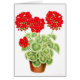 Origineel kunstontwerp van rode geraniumbloemen met gevarieerde bladeren door ontwerper Carolyn McFann van Two Spinnende Cats Studio over kwaliteit en aanpasbare wenskaarten. Zie ook onze postzegels en kantoorbenodigdheden.