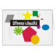 Verschillende kleuren vormen en grootten en een bericht voor ons allen