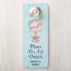 Deurhanger met een schattig ontwerp met een waterverf-illustratie. Een luchtballon versierd met rode en roze bloemen. Een schattig klein wit baby beer zit in de mand. Lichtblauwe achtergrond. Tekst zegt: Gelieve niet storen met gepersonaliseerde tekst.