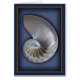 La moitié intérieure d'une coquille de nautilus sur un tapis bleu a placé à l'intérieur d'un effet de cadre de boîte d'ombre.