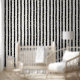 Dit trendy behang is voorzien van verticale zwarte strepen en gouden confetti patroon. Het perfecte accent op uw interieur.