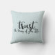 Eenvoudig lichtblauw kussen met handgeschreven citaat "Vertrouw op de timing van uw leven". Zoek dit ontwerp ook op andere producten van Farmhouse Living.