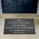 Een schattig op typografie gebaseerd ontwerp met een belangrijk bericht waarin gasten wordt gevraagd hun schoenen aan de deur te verwijderen. Zwart doormat: "Omdat kleine vingers onze vloeren raken, laat je schoenen zo vriendelijk aan de deur staan" in retrorettering. Pas je aan met je familienaam onderaan.