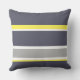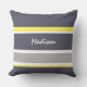 Maak een verklaring met deze gewaagde grijze, witte, en felgele gestreepte kussen! De jouw naam of andere tekst is in modern manuscript bij het centrum. U kunt de tekst eenvoudig verwijderen of zelfs het lettertype wijzigen. Het stripe patroon wordt herhaald op de rug van de kussen, zonder de tekst.