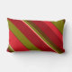 Deze eenvoudige maar decoratieve lumbale kussen hebben een kleurrijk abstract patroon van vetgedrukte geometrische strepen in kleuren van rood, oranje, bruin, olijfgroen, zwart en geelbruin.