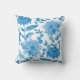 Square pillow with a white background featuring a vibrant blue floral pattern. Both front and back showcase the same intricate design.