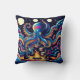 Een octopus speelt energiek drums terwijl twee mensen genieten van het kampvuur onder een sterrenhemel, omringd door levendige wolken en manen.