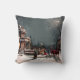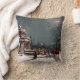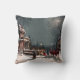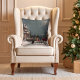 Kussen met een besneeuwde maanlichtscène terwijl gasten met paard en slee aankomen voor een kerstfeest in het fel verlichte Victoriaans herenhuis.