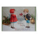 /Victoriaans kerstwenskaart. Schattige kleine jongen met een heilige bouquet voor een lief meisje! Kerstgroet! Moge al je liefste hoop uitkomen, en maak je kerstmis helder voor je!