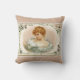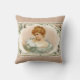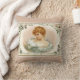 Een portret van een Victoriaans dame met een zachte blauwe jurk omringd door dagenbloemen. Afbeelding van een Victoriaans Kaart voor de handel op beige achtergrond.
