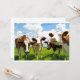 Vier gekletste koeien onderbroken in hun dagelijkse kletspraat door de fotograaf. Op de weide staan op een mooie zomerdag met een geweldig wolkenlandschap op de achtergrond. Foto genomen in Friesland, het huis van de Frisiaanse koeien. Beschouw ze dus als buitenaardse wezens in de koe gemeenschap van de Frisianen, maar ze zijn mooie dames!
