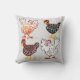 Vier gelukkige kippen met eieren maken een vrolijk kussenontwerp van het landelijke decor