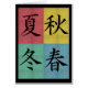 , kleurrijk wenskaart dat de vier seizoenen in de Japanse kanji toont met vier achtergrondkleuren die elk seizoen weergeven. Het zwarte overzicht kan gemakkelijk worden veranderd door op de aanpassingsknoop te klikken. Bezoek de winkel voor overeenkomende cadeaus.