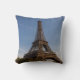 Een vierkant kussen met een foto van de Eiffeltoren