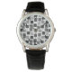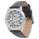 Dit horloge van mannen heeft een geometrisch ontwerp van vierkantjes in zwart en schaduwen van grijs verspreid over met hun overzichten.