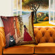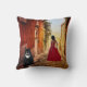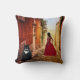 Coussin avec un tableau d'une dame en rouge dans un village italien romantique avec un gros chat en smoking : -) Parfait pour une dame folle qui aime l'Italie.