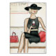 © Andrea Laliberte/Apple sauvage. Une femme à la mode habillée tenant un verre de vin. La femme porte un casquette noir et une robe avec un sac rouge.