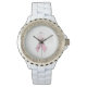 Wit horloge met een roze borstkanker bewustzijnslint in het centrum "Find the Cure" geweldig cadeau voor een overlevende van de kanker. Jubileum, Viering, Oktober Bewustmakingsmaand Borstkanker.